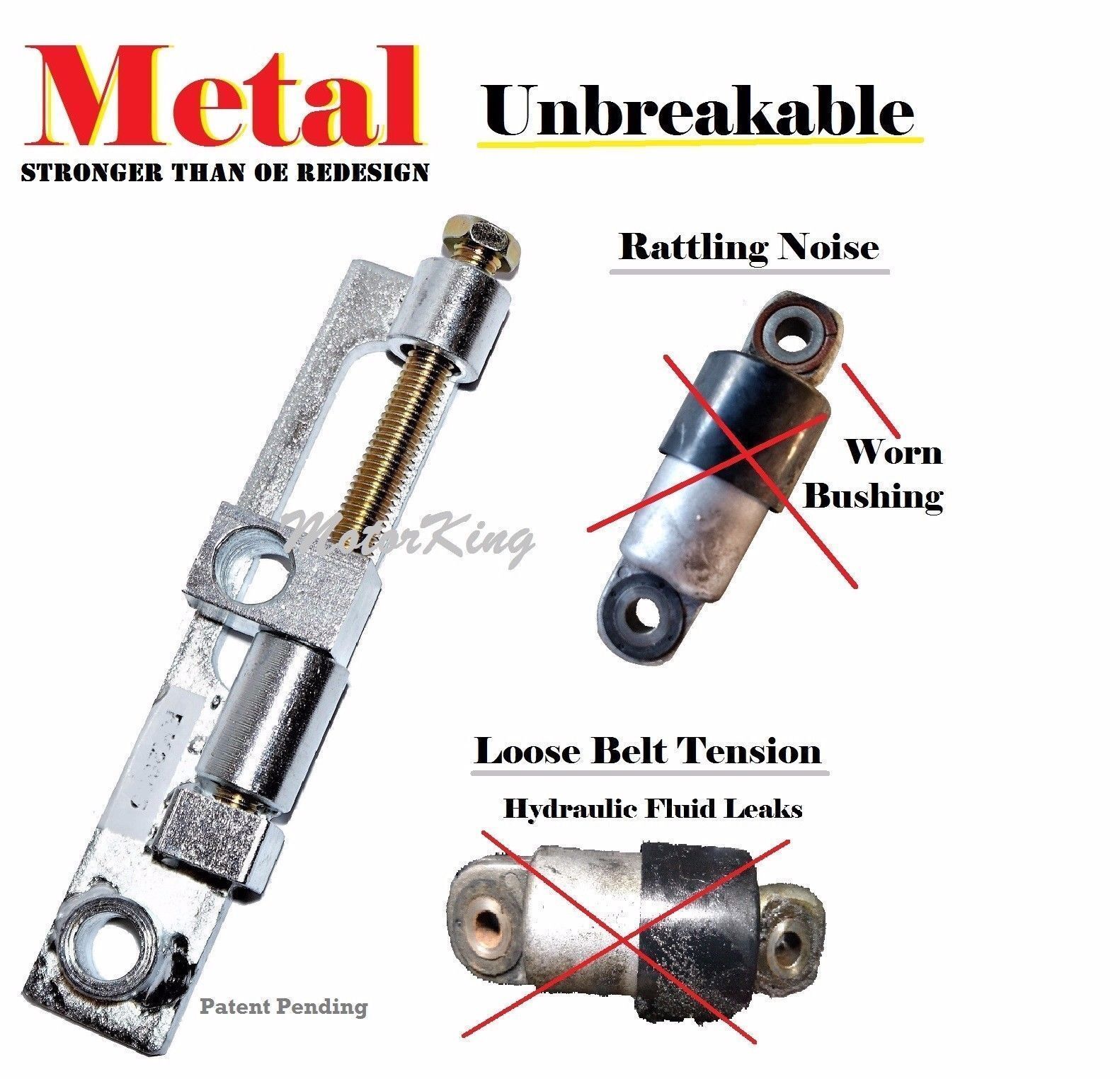 MotorKing est fier de présenter ses kits de réparation de tendeur manuel. Lorsque le liquide hydraulique fuit ou que la bague est cassée, cela provoque un bruit de cliquetis ou une tension de courroie lâche.