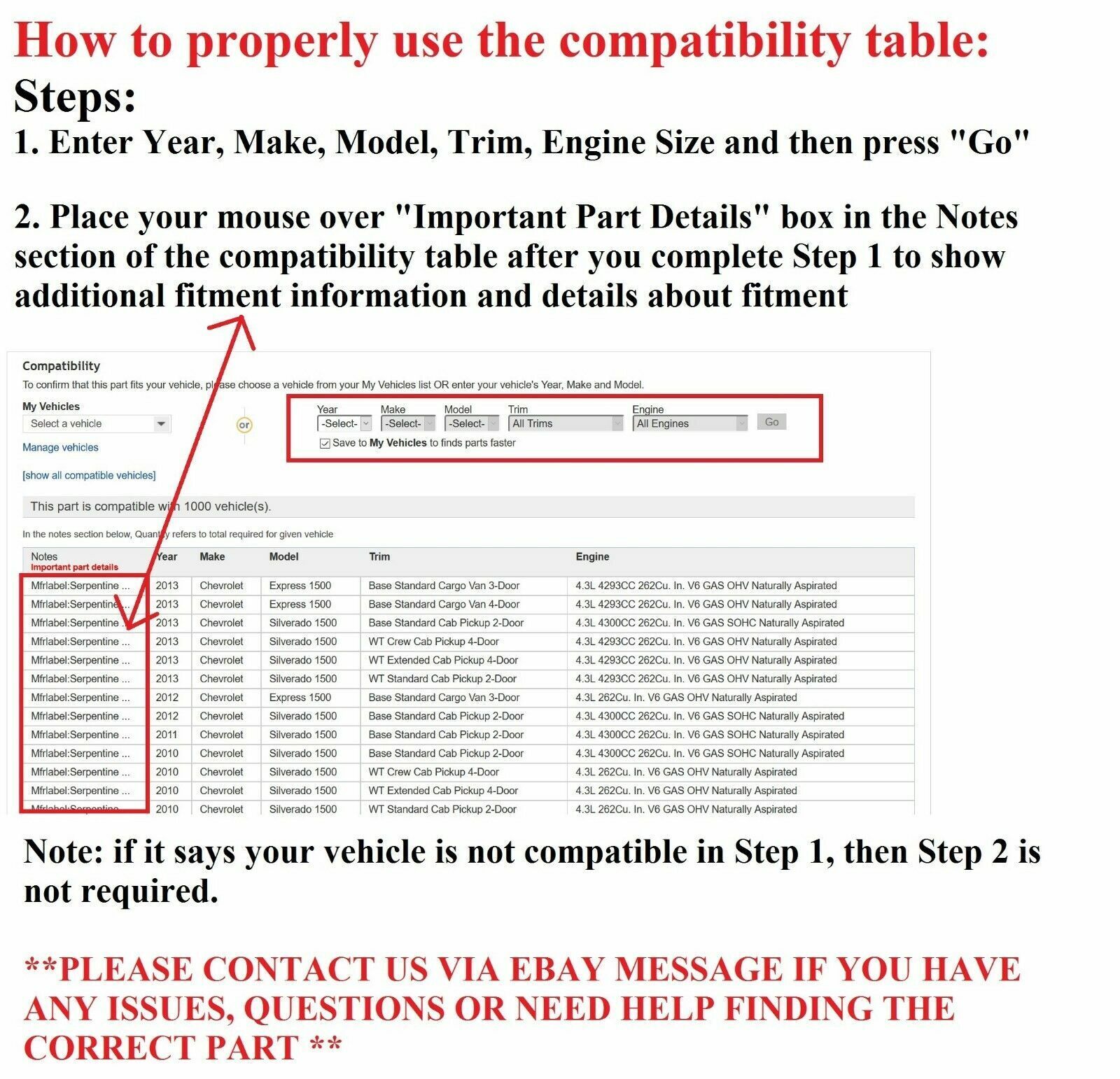 Please make sure that your vehicles specifications matches our ebay Compatibility.