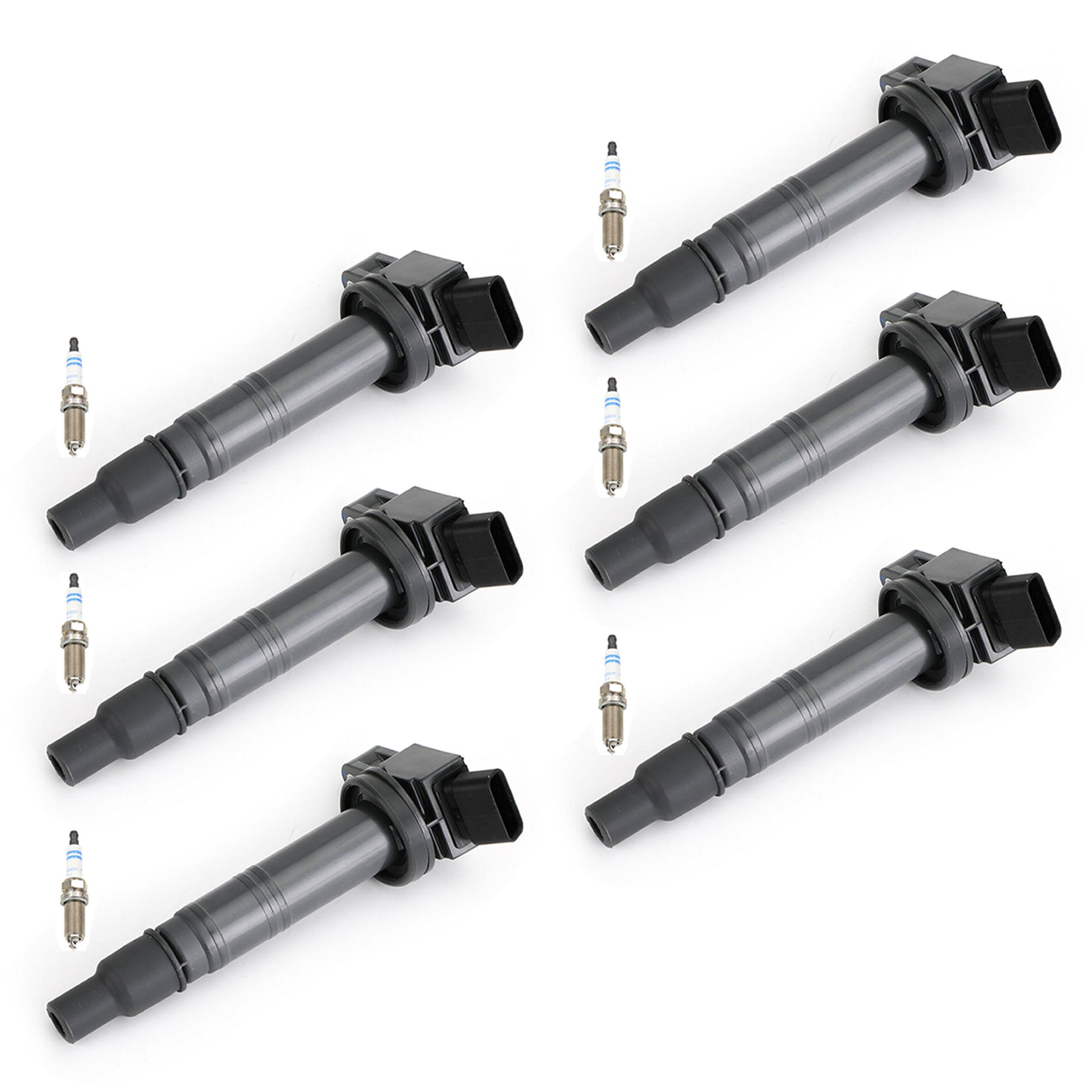 Lot de 12 bobines d'allumage MotorKing et bougies d'allumage double platine Bosch.